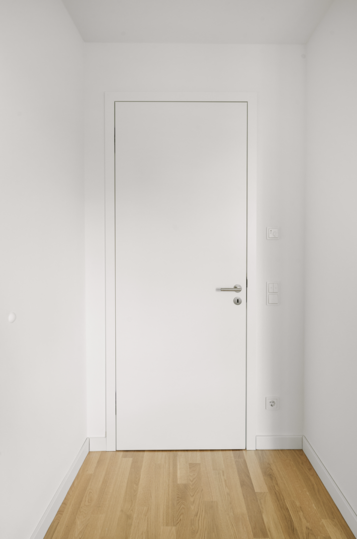 • Stumpf einschlagende Türblätter mit modernen Griffen