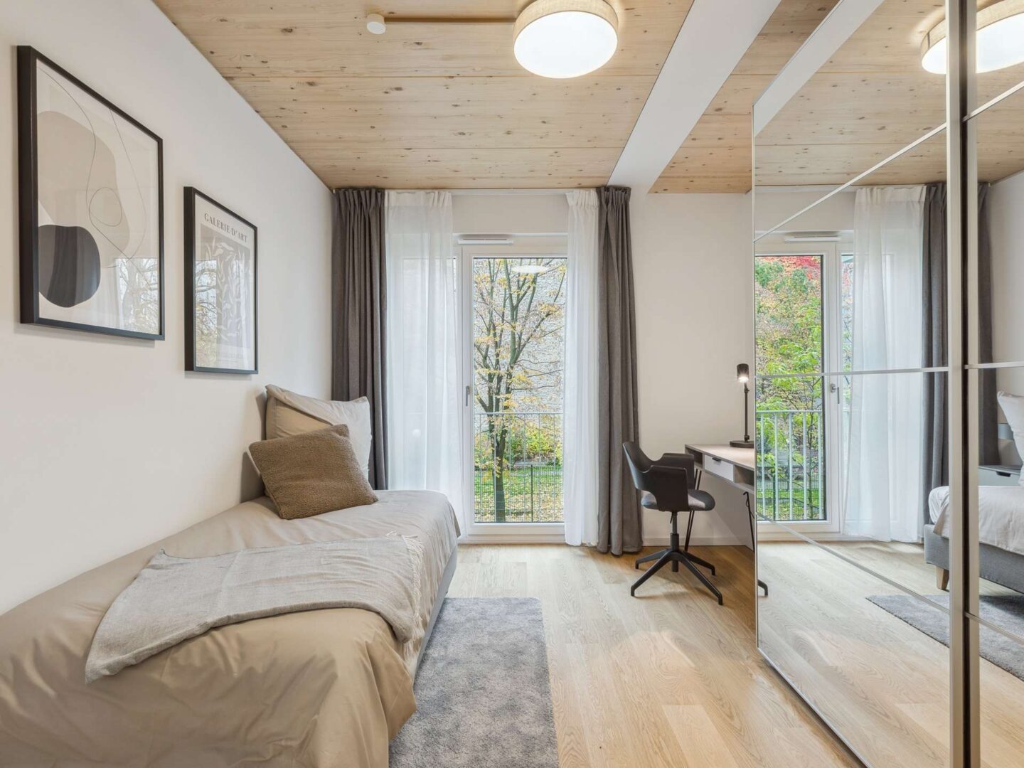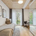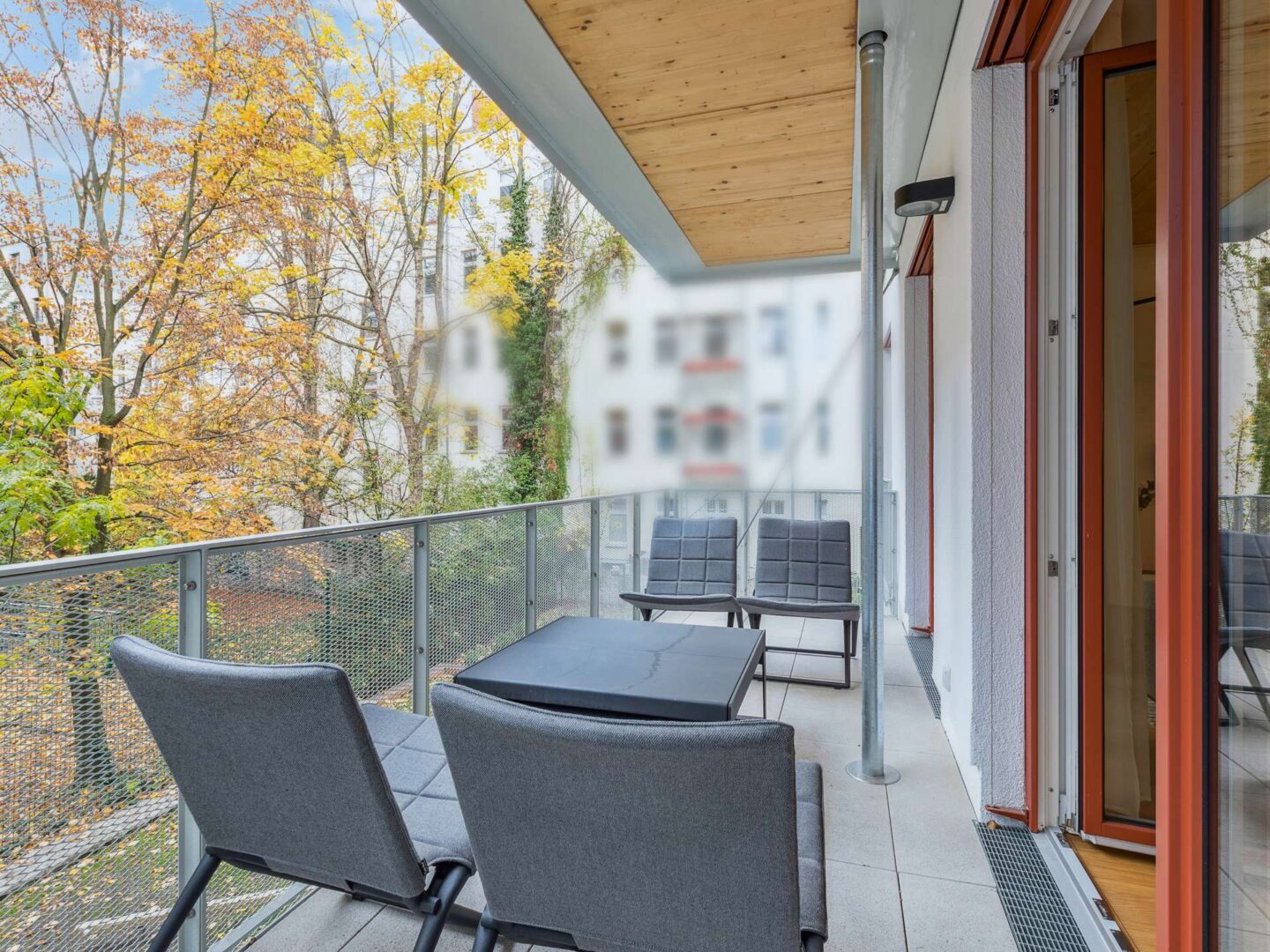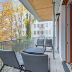 Willkommen in Ihrem neuen Zuhause am Stuttgarter Platz - einem architektonisch ganz besonderen Gebäude. In Holz-Hybridbauweise errichtet, besticht dieses nicht nur mit seiner modernen Architektur, sondern vor allem durch seine einzigartige Wohnatmosphäre. Wer auf der Suche nach Natürlichkeit und purem Design ist, wird hier sein zu Hause finden. Vom trubeligen Stuttgarter Platz kommend, trifft man auf einen grünen Innenhof mit zahlreichen Pflanzen, Hecken und viel Rasen. Verschiedene Hölzer im Garten und an der Fassade vermitteln direkt ein Gefühl von Ruhe und Entspannung. Eine kleine Gemeinschaft mit 7 Wohnungen (jeweils 1 Wohnung pro Etage) erinnert an eine Baugruppe und vermittelt einen sehr hohen Grad an Anonymität und Privatsphäre. Jede Wohnung wird über einen Aufzug erreicht, welcher direkt in die Wohnung führt.